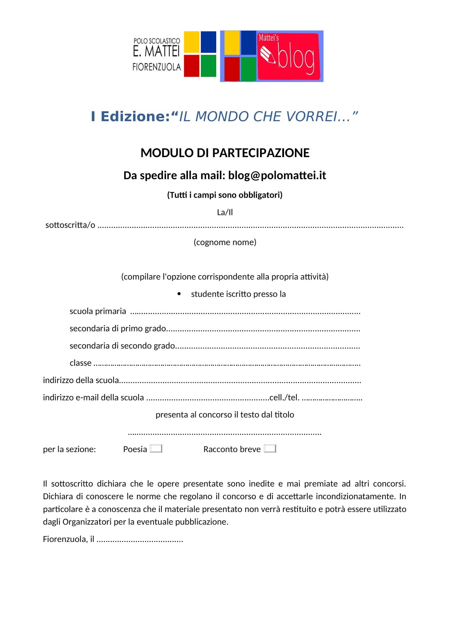 » IL MONDO CHE VORREI... prima edizione del concorso letterario bandito dal mattei'sblog